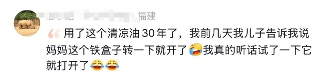 河南洛阳一家清凉油厂家工作人员表示打开清凉油铁盒有一定的技巧,提示要“转着圈开”