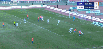 第32分钟,谢文能下底传到门前,埋伏在禁区的泽卡头球破门。泰山队2-0扩大比分。